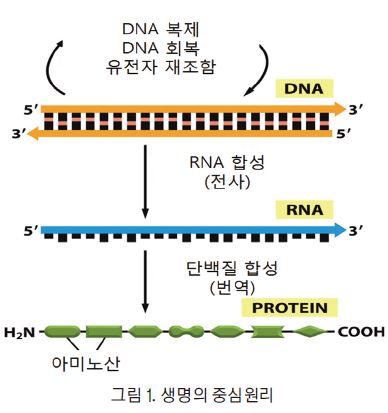 λΆμμλ¬Όνμμ κ°μ₯ κΈ°λ³Έμ μΈ κ°λ μ€ νλλ **μ€μ¬ μ리(Central Dogma)**μ λλ€. μ΄λ μ μ μ λ³΄κ° DNAμμ RNAλ₯Ό κ±°μ³ λ¨λ°±μ§λ‘ μ λ¬λλ€λ κ°λ μΌλ‘, μΈν¬κ° μ μ μ 보λ₯Ό μ¬μ©νμ¬ κΈ°λ₯μ λ¨λ°±μ§μ ν©μ±νλ κ³Όμ μ μ€λͺ ν©λλ€. μ΄ κ³Όμ μ ν¬κ² 볡μ (replication), μ μ¬(transcription), **λ²μ(translation)**μ μΈ κ°μ§ λ¨κ³λ‘ μ΄λ£¨μ΄μ§λλ€.