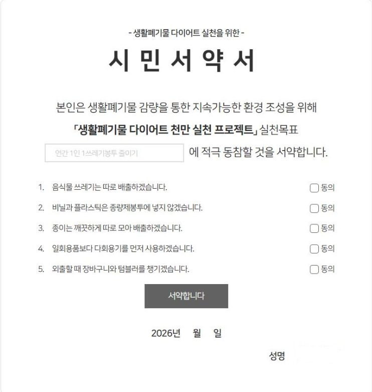์ค์ธํ ์์ธ์์ฅ·๋ น์์์ธ์๋ฏผ์์ํ ์์์ฅ ๋ฐ ์์ธ์ ํ๋ณด๋์ฌ์ ์์ฝ์ ์์์ผ๋ก 10๋ง ์๋ฏผ ์ฐธ์ฌ๋ฅผ ๋ชฉํ๋ก ์ถ์ง๋๋ฉฐ์ด๋ฒ ์ฑ๋ฆฐ์ง๋ฅผ ํตํ ์๋ฏผ ํ ์ฌ๋ ํ ์ฌ๋์ ์ผ์ ์ ์ค์ฒ ํ์ฐ์ผ๋ก ์ํํ๊ธฐ๋ฌผ์ ์ค์ง์ ์ธ ๊ฐ๋๊ณผ ์ํ ์ต๊ด์ด ์๋ฆฌ์ก์ ์ ์์ ๊ฒ์ผ๋ก ๊ธฐ๋ํ๊ณ ์์ต๋๋ค.