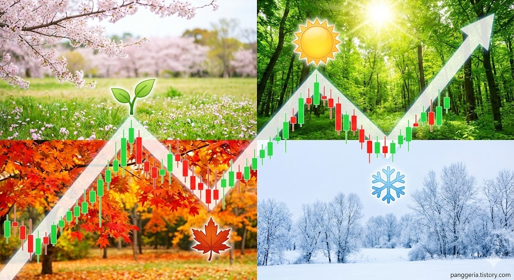 <์ด๋ฏธ์ง ํ๋กฌํํธ: (์์ธ ๋ฌ์ฌ) ์ฌ๊ณ์ ์ด ๋๋ ทํ ํ๊ฒฝ ์์ ์์นํ๋ ์ฃผ์ ๊ทธ๋ํ๊ฐ ์ค๋ฒ๋ฉ๋ ์ด๋ฏธ์ง. ๋ด์๋ ์์น, ์ฌ๋ฆ์ ํ์, ๊ฐ์์ ๋จํ, ๊ฒจ์ธ์ ๋ ๊ฒฐ์ ์ฒด ์์ด์ฝ์ด ๊ทธ๋ํ ๋ณ๊ณก์ ์ ๋ฐฐ์น๋จ. / ํ ์คํธ ๋ก๊ณ : "panggeria.tistory.com" / Alt Text: ๊ณ์ ์ฃผ ํฌ์ ์ฌ์ดํด๊ณผ ์ฃผ๊ฐ ๊ทธ๋ํ>